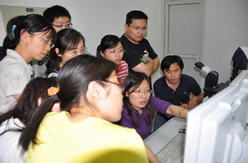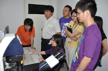 TIME: 28 May 2010Laser scanning confocal microscope applications and new technology training, one of instruments and technology lecture series, was held in IGDB on May 24, 2010. Tian Yanbao from Center for Genome Biology chaired the event. In the morning session, Dr. Wang Yijing, Leica Company’s application engineer presented a report on the applications and in the afternoon he gave a 3 hours training on the machine usage.