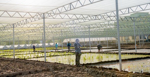 Gao Caixia’s team grows CRISPR-modified rice strains in experimental paddies near its lab in Beijing. (Image by STEFEN CHOW)