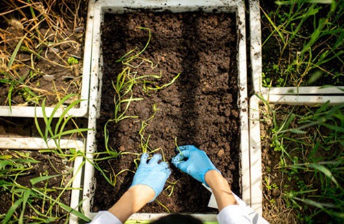 A researcher who works with Gao Caixia plants CRISPR-modified wheat in a Beijing greenhouse. (Image by STEFEN CHOW)
