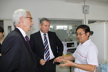 Dr. Plischke and Mr. Frank Dietrich introduced the Bayer Group and the Bayer CropScience, respectively. Director Xue also made an introduction of IGDB to the delegation. Both parties had a friendly discussion about the possibility to establish a long-term strategic partnership in the area of agricultural sciences. The Bayer delegation also had a tour of laboratory and the National Plant Gene Research Center (Beijing).