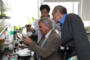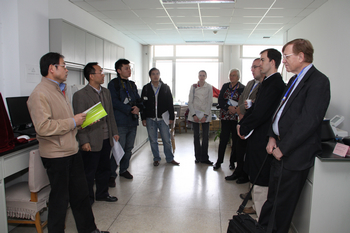 TIME: 27 Apr 2010Senior International Scientists and Young Fellows of CAS with biological background visited IGDB in the morning of April 27 in 2010. Dr. Yong Q. Zhang, the Deputy Director, hosted their visit. The delegate visited with great interest the State Key Laboratory of Plant Cell and Chromosome Engineering , then the plant hormone analysis station, and finally the Center for Developmental Biology.