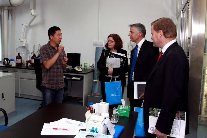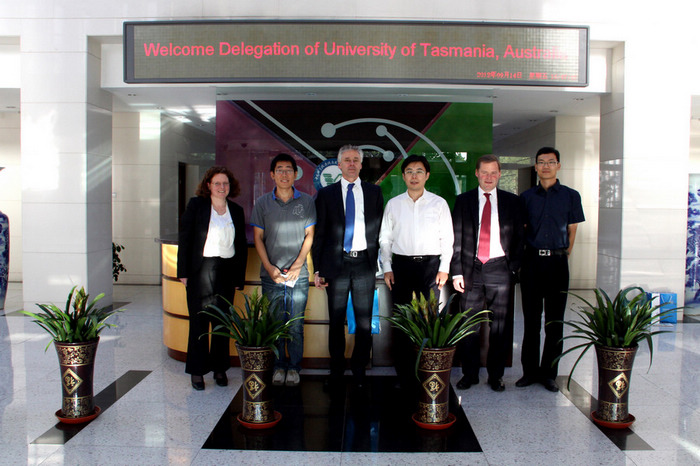 TIME: 17 Sep 2012Prof. Peter Rathjen, Vice-Chancellor and President of University of Tasmania (UTAS), Australia, Prof. Peter Frappell, Pro Vice-Chancellor (Global Engagement) of UTAS, and Ms. Moya Fyfe, Chief of Staff, visited IGDB on September 14. Dr. XU Weihua, Deputy Director of the institute, as well as Dr. ZHANG Jinsong, Deputy Head of the Center for Genome Research, took part in the meeting.