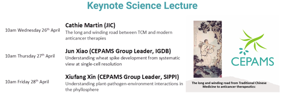 The CAS-JIC Centre of Excellence for Plant and Microbial Science (CEPAMS) virtual meeting on April 26-28th was a great success this year in 2023!