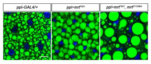 Figure 1. Overexpressing MRT results in large lipid droplets. (Image by IGDB)