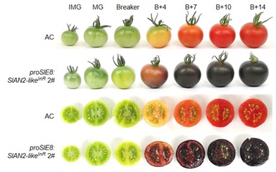 Purple tomatoes with anthocyanins fulfilled in the flesh and the peel of tomato fruits by overexpressing SlAN2-like (Image by IGDB)