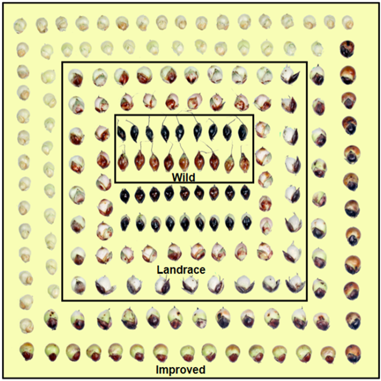 Figure 1. Abundant phenotypic variations in sorghum glume coverage (Image by IGDB)
