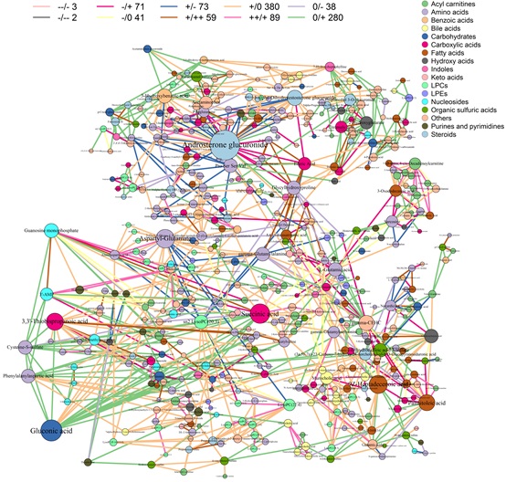 Multiscale embedded correlation network analyses (MECNA). MECNA illustrates the differential correlation between various metabolites in young (n=72) and old (n=71) groups. (Image by IGDB)
