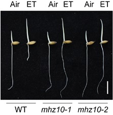 Fig. 1 Ethylene-response phenotype of two alleles of mhz10. (Image by IGDB)