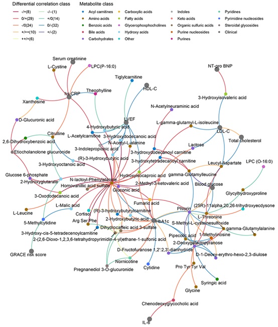 Multiscale embedded gene co-expression network shows the relationships defined by differential correlation analysis (DGCA) among the differential metabolites and clinical indices. (Image by IGDB)