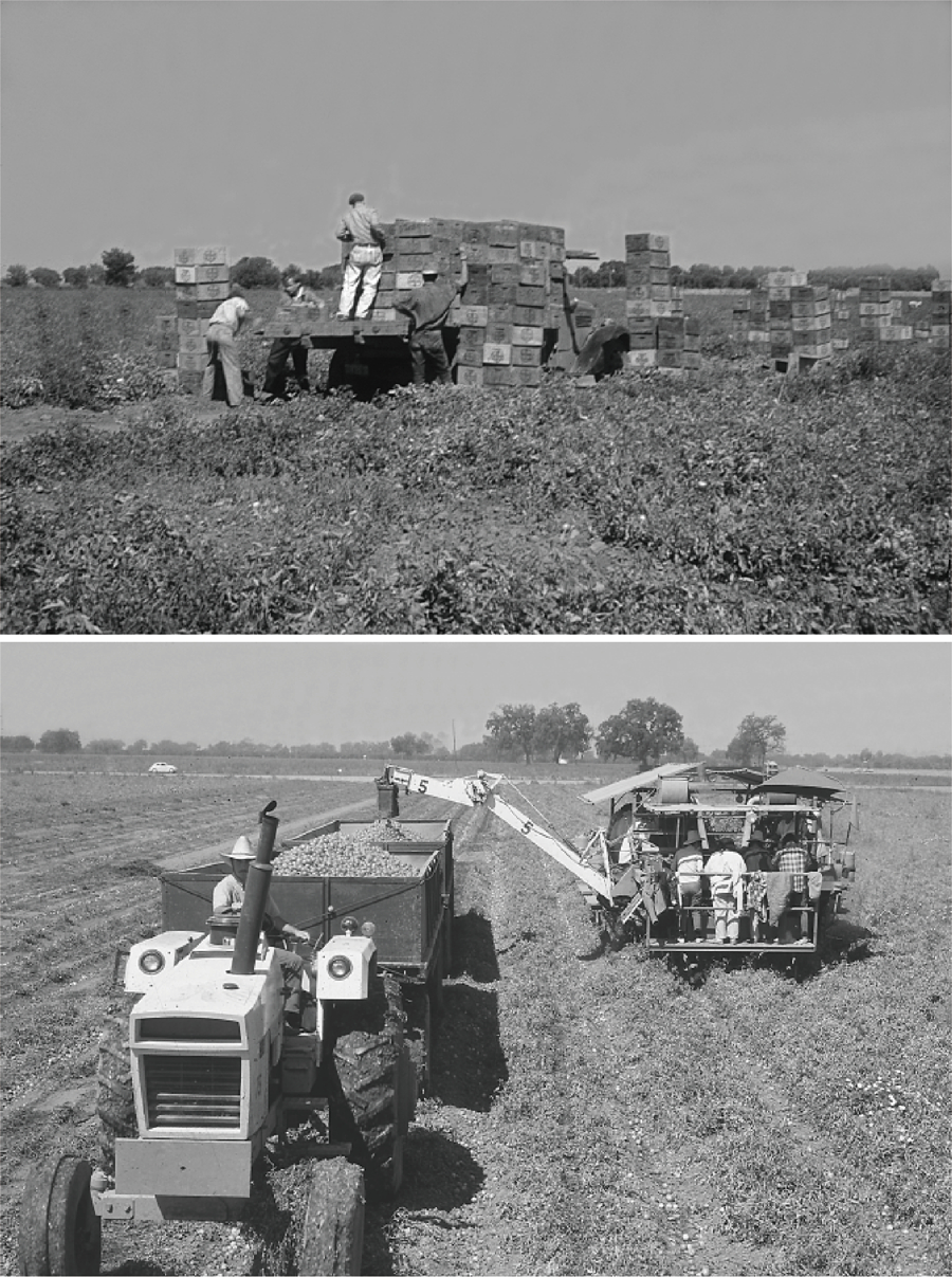 Figure 1. Application of fs8.1has facilitated mechanical harvesting of processing tomatoes (Image from Scott, 2014, Report of the Tomato Genetics Cooperative) In this study, researchers led by Prof. LI Chuanyou from the Institute of Genetics and Developmental Biology (IGDB) of the Chinese Academy of Sciences (CAS) reported the cloning, functional characterization, and breeding application of fs8.1.