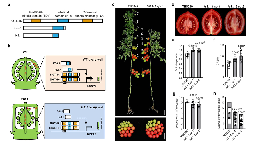 They demonstrated that the fs8.1 mutation has a stronger promoting effect on cell proliferation in the ovary wall than in the columella, resulting in an elongated fruit shape. They then identified the FS8.1 gene and found that it encodes a non-canonical GT-2 factor that lacks the characteristic trihelix DNA-binding domain.