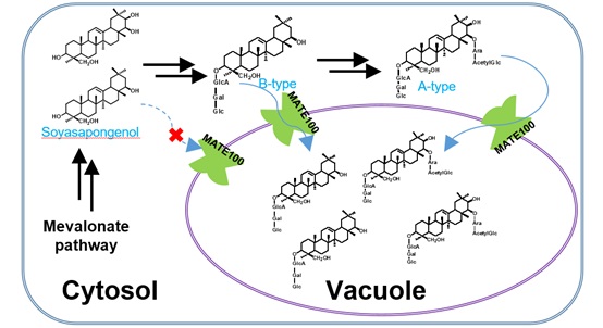 Figure 1. GmMATE100 is involved in the soyasaponin transport form the cytosol into the vacuole in soybean plants. (Image by IGDB)