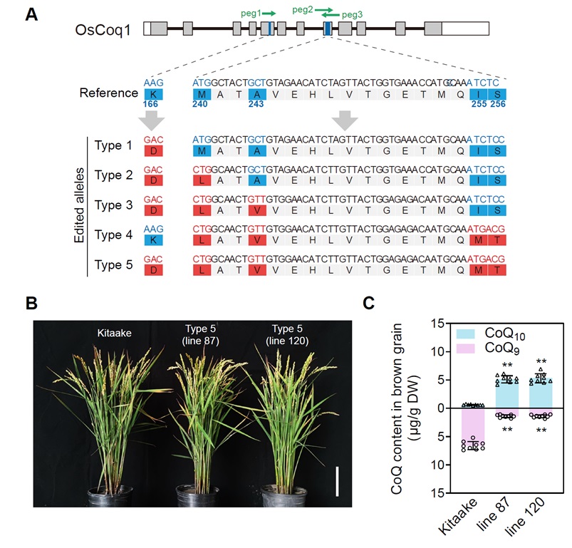 Figure. Generating CoQ10 rice lines by genome editing (Image by XU Jingjing, et al)