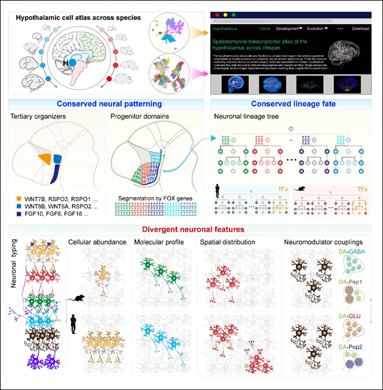 In this new study, Wu’s team closely examined how brain cells in the hypothalamus are organized during development, traced how different types of cells emerge from neural progenitors as the brain grows, and identified which genetic features have been conserved across mammals—and which ones have uniquely changed in humans over the course of evolution.
