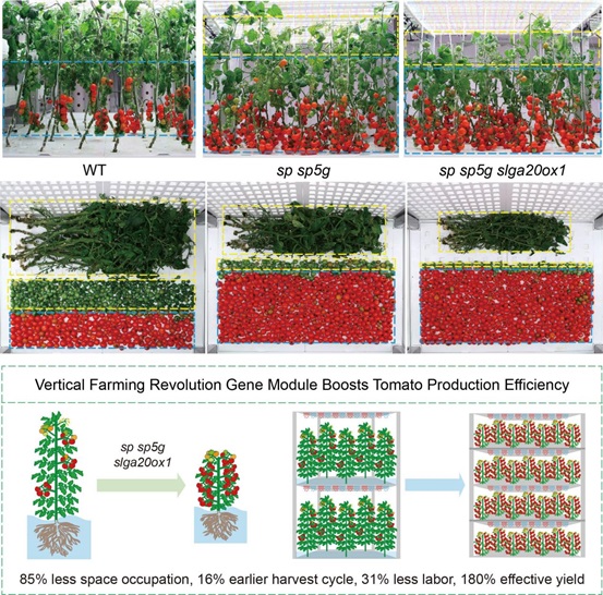 Figure. Genome editing of molecular module for “vertical farming revolution” significantly enhance tomato production efficiency (Image by IGDB)